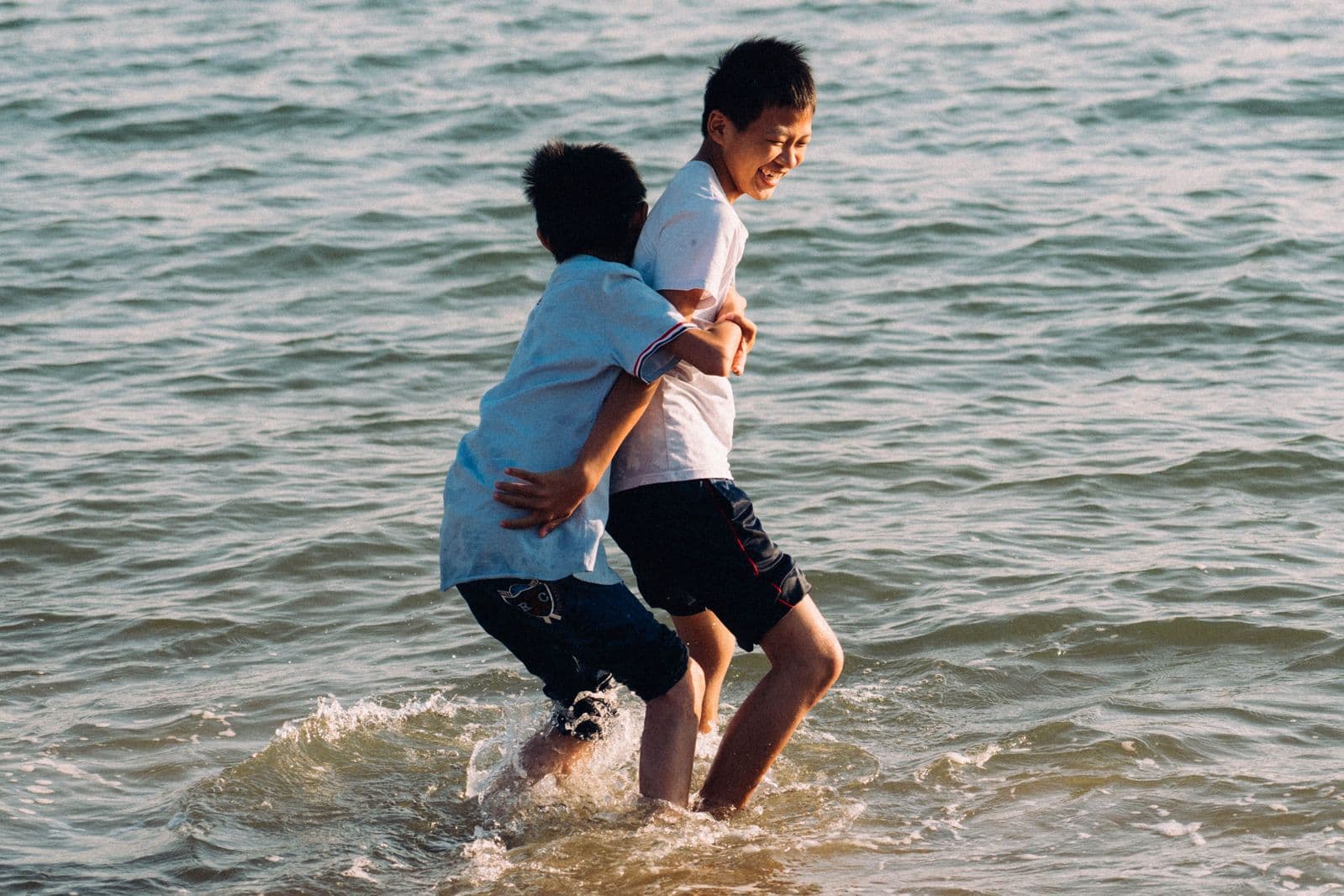虽然在东南沿海的江浙长大,但第一次看到海却已经二十几岁了,早已过了赤脚在海滩嬉戏玩闹的年纪和心境,看着曙光下童趣的他们却也依旧难免心生羡慕。