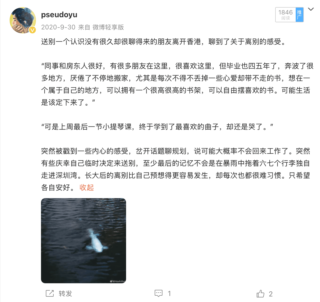 送别一个认识没有很久却很聊得来的学姐离开香港,说可能大概率不会回来工作了。突然有些庆幸自己临时决定来送别,至少最后的记忆不会是在暴雨中拖着六七个行李独自走进深圳湾。长大后的离别比自己预想得更容易发生,却每次也都很难习惯。只希望各自安好。